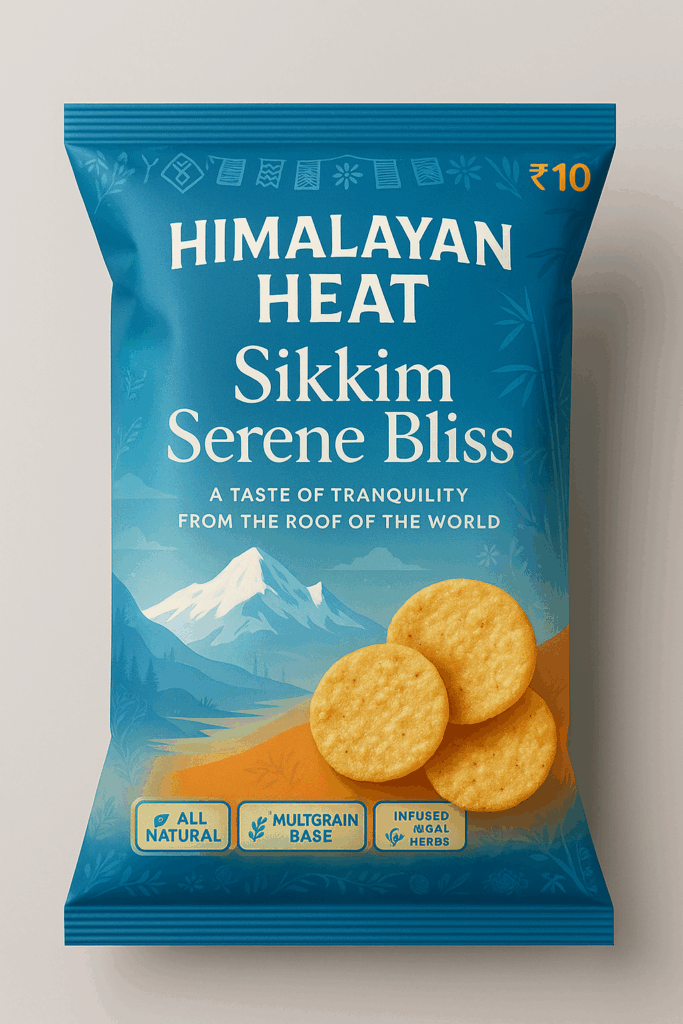 “Sikkim Serenity blends 7 nourishing grains with Sichuan pepper’s subtle tingle and Himalayan pink salt’s purity for a soothing, crisp, flavorful snack.”
